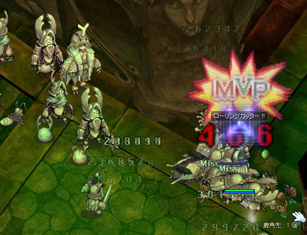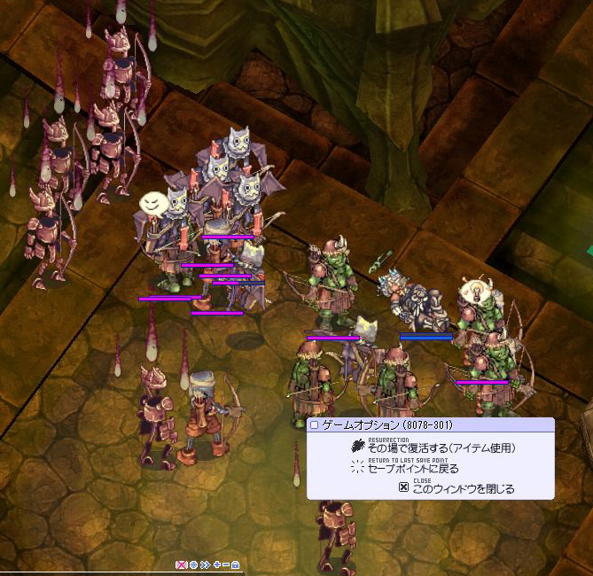 さすがに装備が貧弱なだけあって1匹に対してスポア5、6発かかる。・゚・(ノ∀`)・゚・。